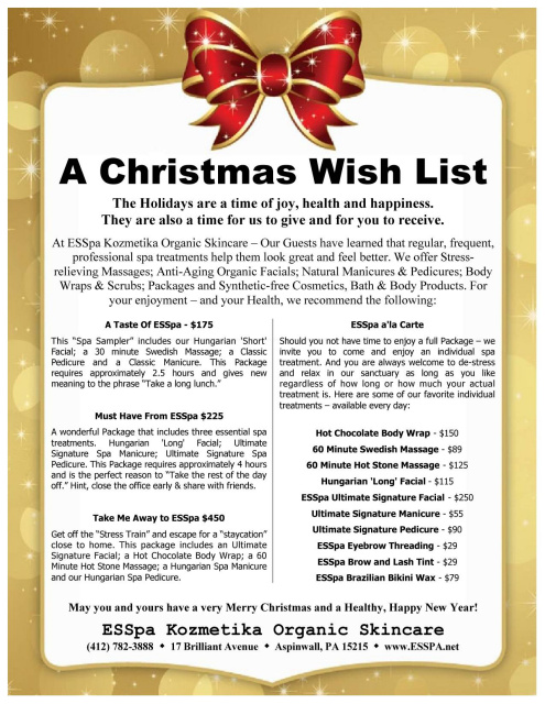 PLEASE NOTE: The above and any other statements or information on this website is not provided as nor is to be interpreted as medical advice. ESSpa and it's employees do not perform medical treatments and our services are not to be considered as such. We encourage all customers to ask a medical professional before scheduling any treatment at ESSpa if they have any question. Website TOS